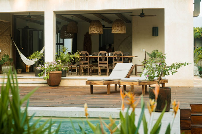 Casa Carrizo has been designed to bring the outside in - to which end you can open up the whole front of the house with 6 metre wide sliding pocket doors on both levels. On the ground floor it opens out on to a gorgeous open terrace with a dining table for 8 people. It also features a built-in asador for BBQ'ing your catch of the day and firewood is provided. There is also a hammock and a large seating area with sun shades for the late afternoon sun.
